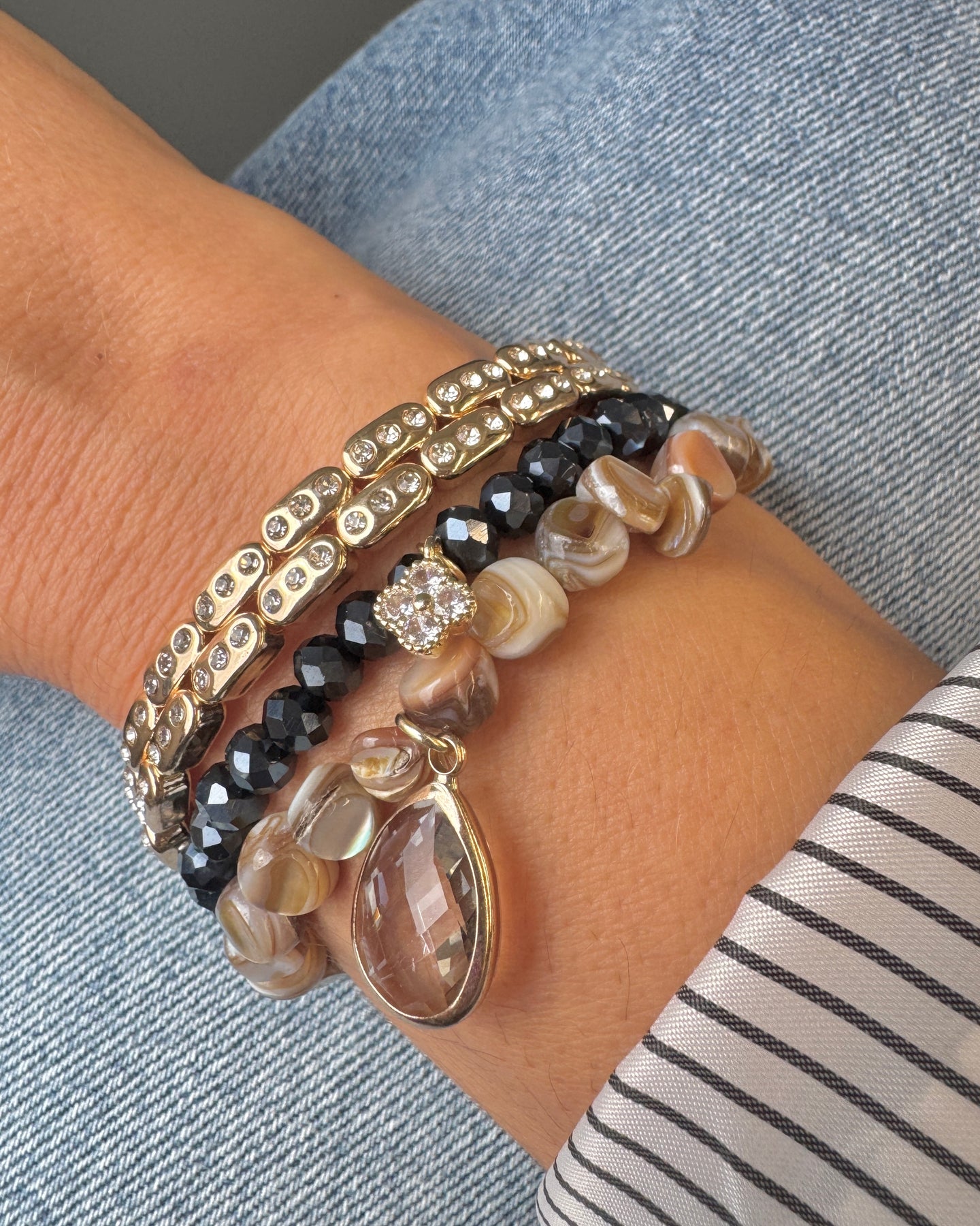 This bracelet features navy crystal beads paired with a delicate four-leaf clover charm - a timeless symbol of good fortune and positivity.
