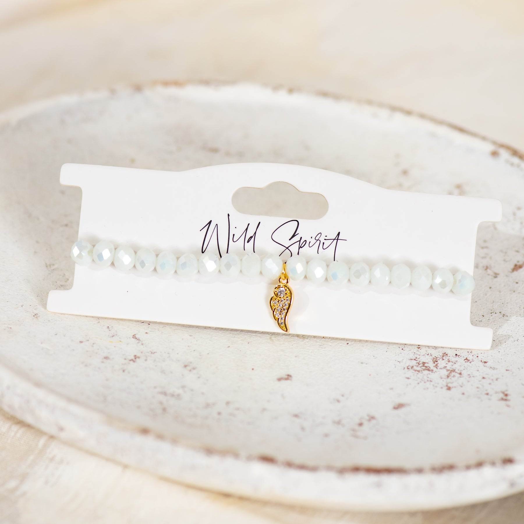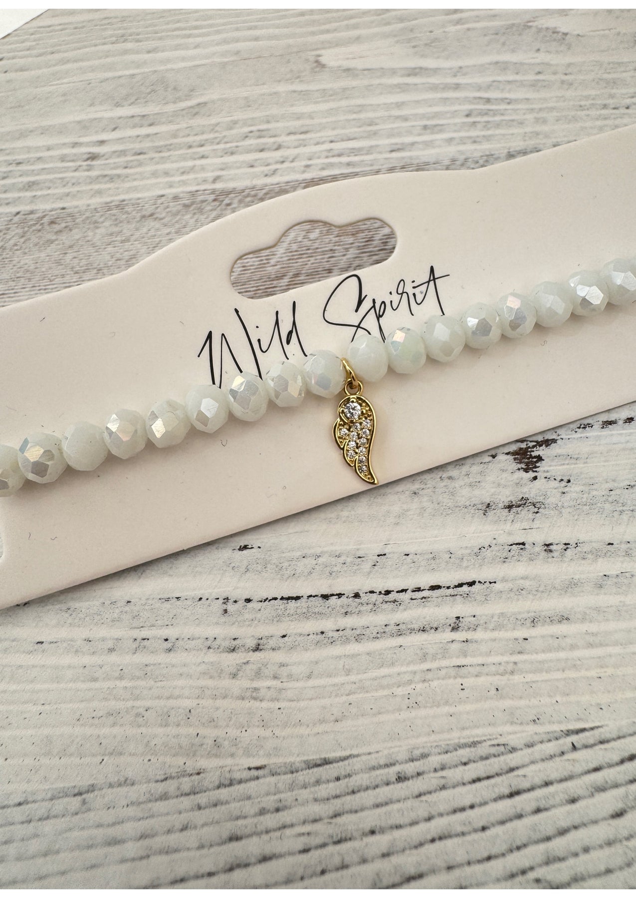 This bracelet features white crystal beads and a delicate wing charm - a thoughtful reminder that you’re always supported, even when you fly solo.