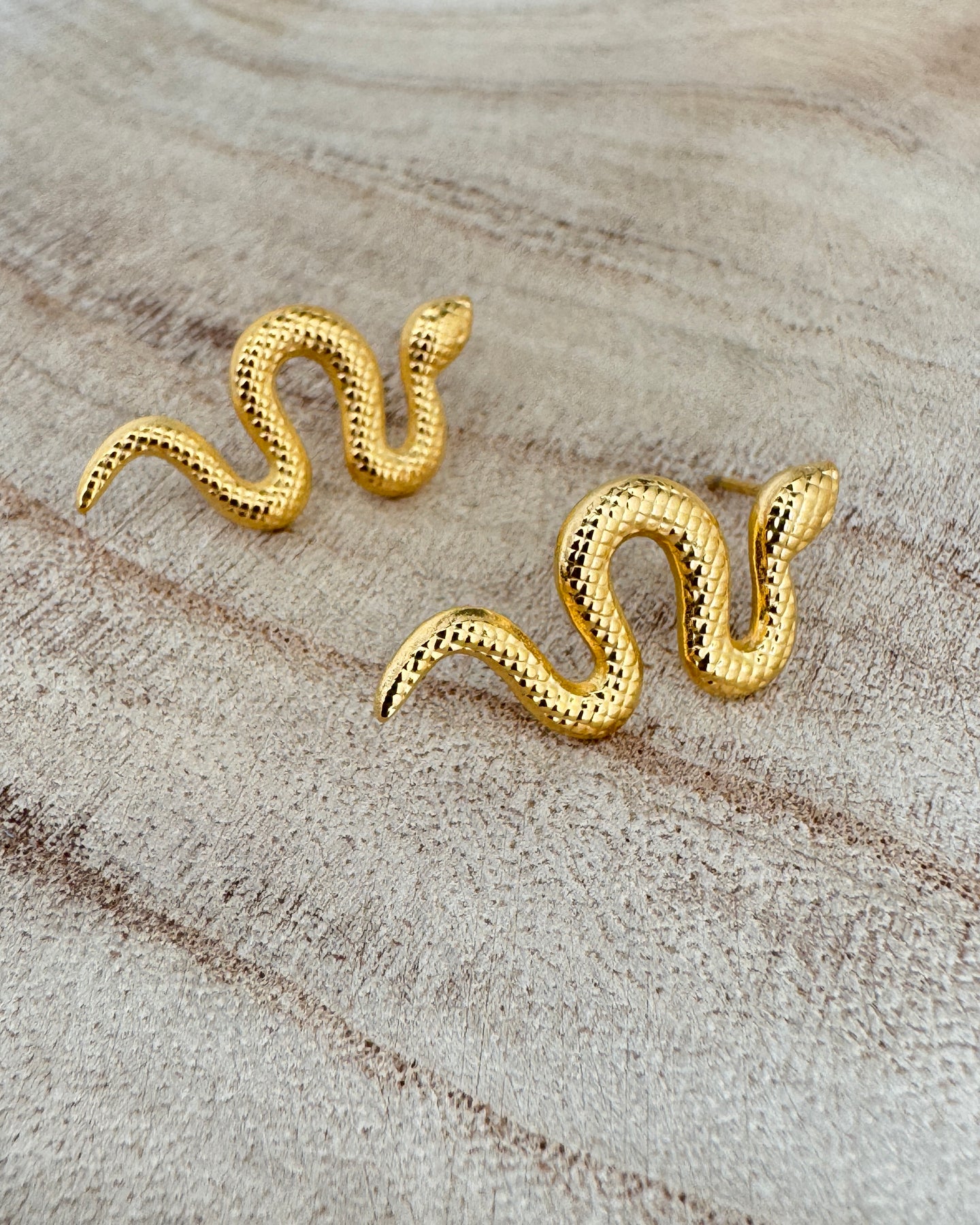 Make a bold statement with these snake stud earrings—perfect for adding a touch of edgy glamour to your look.