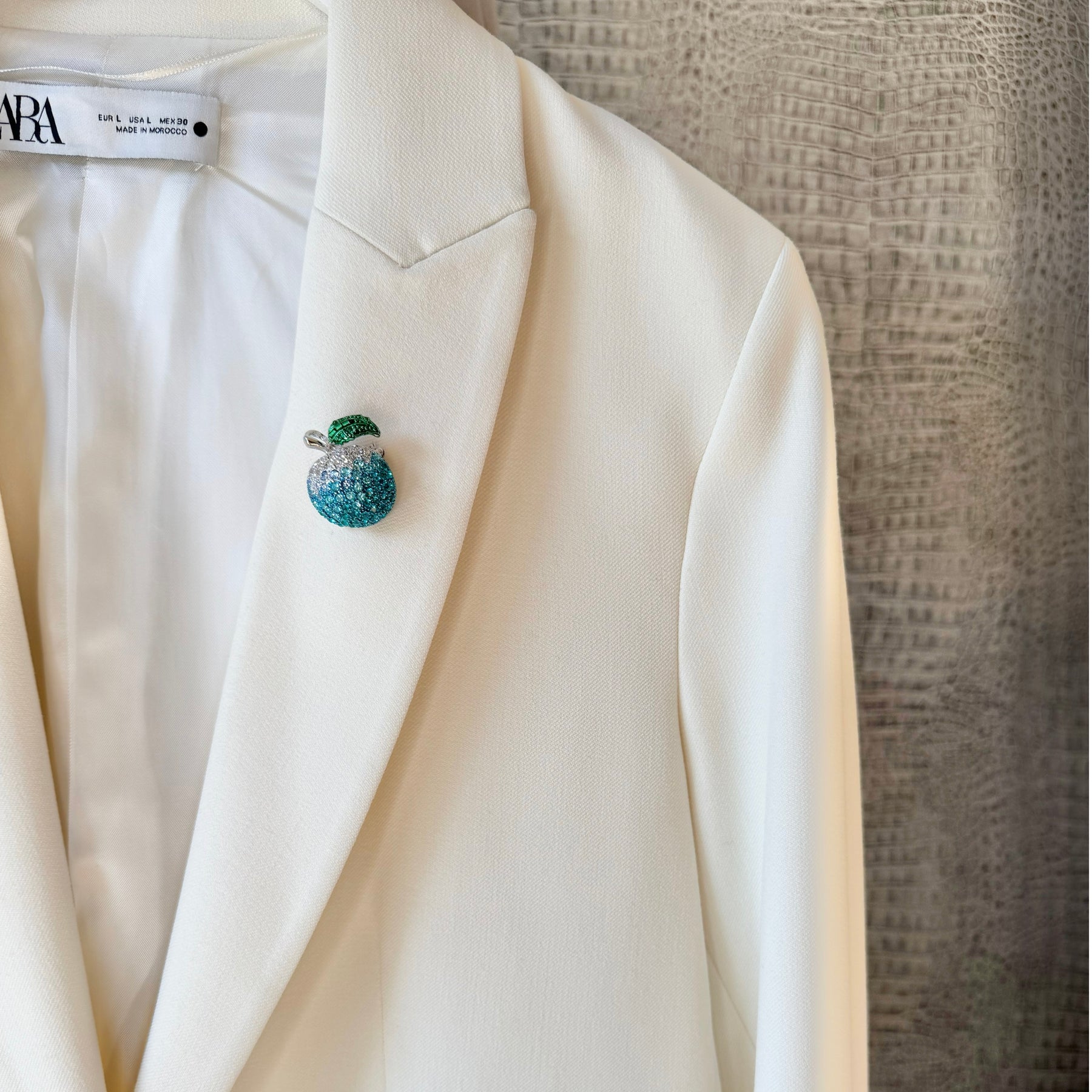 The Mini Sparkly Blue Apple Brooch also makes a great gift for fruit lovers, teachers, or anyone who appreciates unique and quirky accessories.