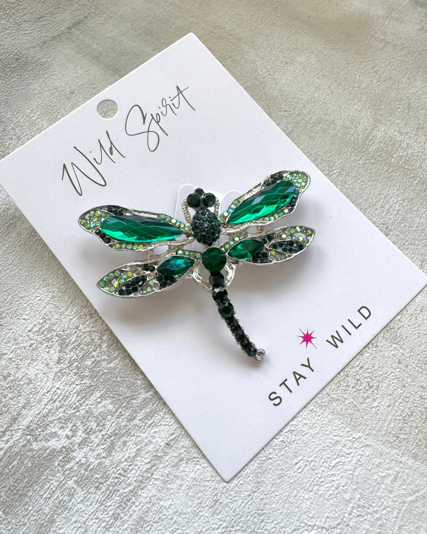 The beautiful Emerald Dragonfly Brooch features a stunning blend of green crystal accents, celebrating the dragonfly’s symbolism of joy, transformation, and fearless self-expression.