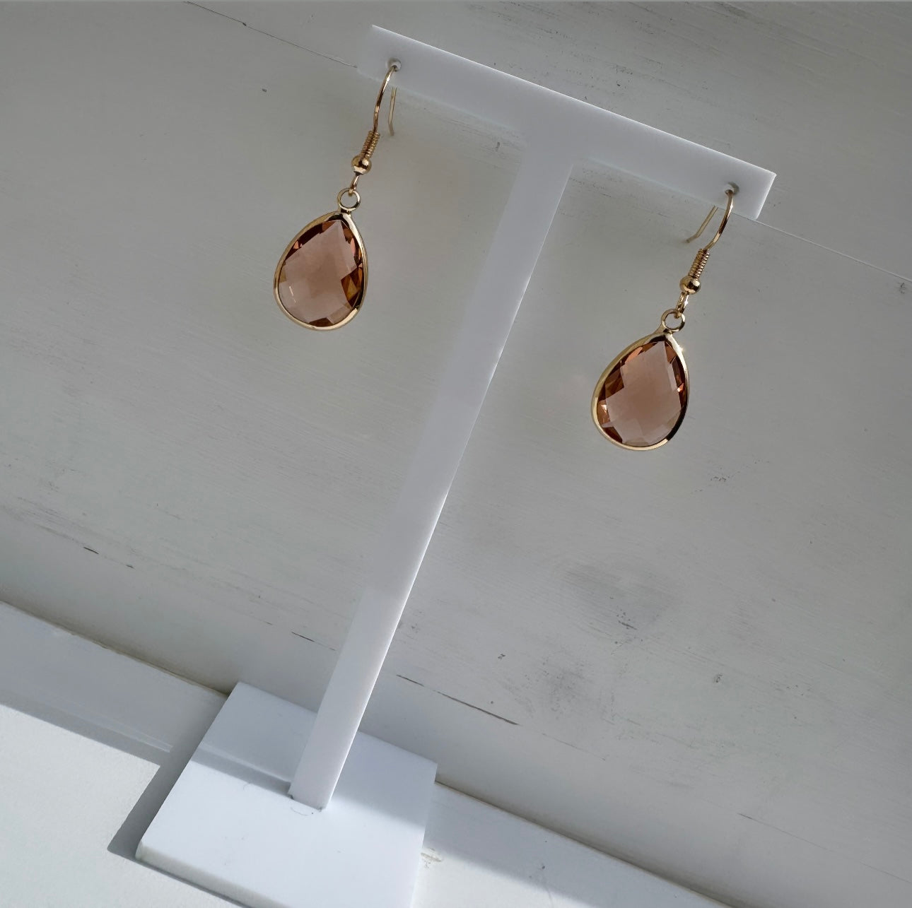 Our bestselling Olive earrings made with peach quartz stones. Comfortable for all day wear with a lightweight classic hook design.