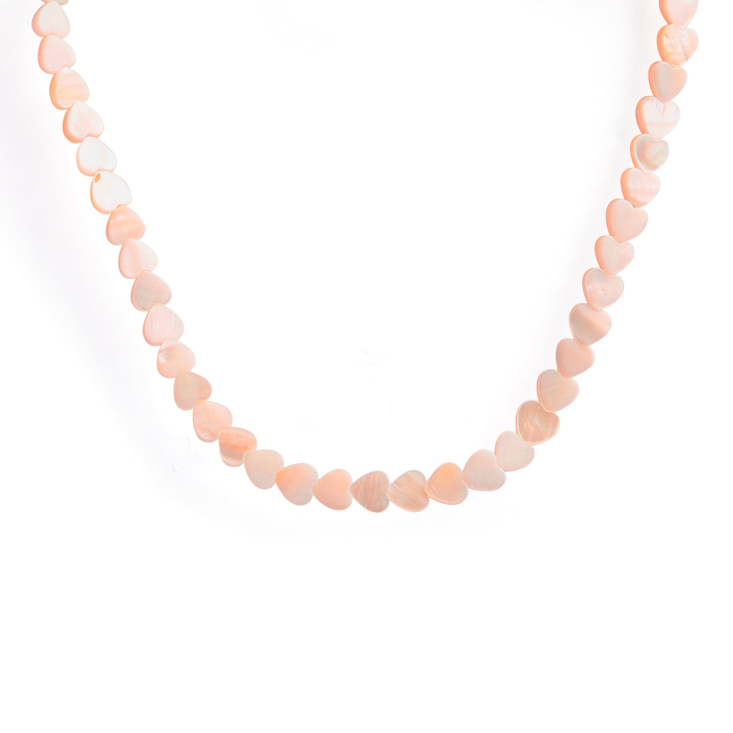 The Amora Shell Necklace is crafted from beautiful heart-shaped, pearlised shell beads that gently glisten as they catch the light, bringing a delicate, romantic finish to everyday styling.