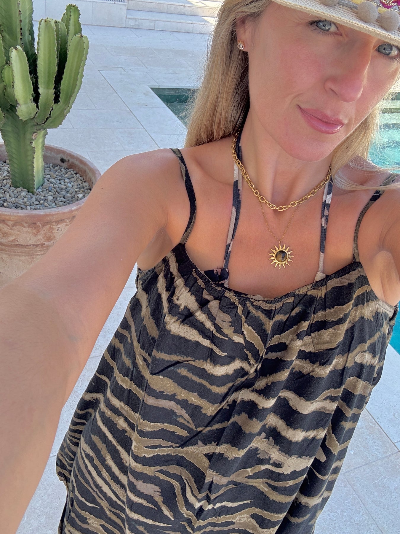 For best long-term glow: after sea or chlorinated water, rinse and pat dry. Avoid harsh chemicals (bleach, hair dye, strong cleaners) and abrasive scrubs.