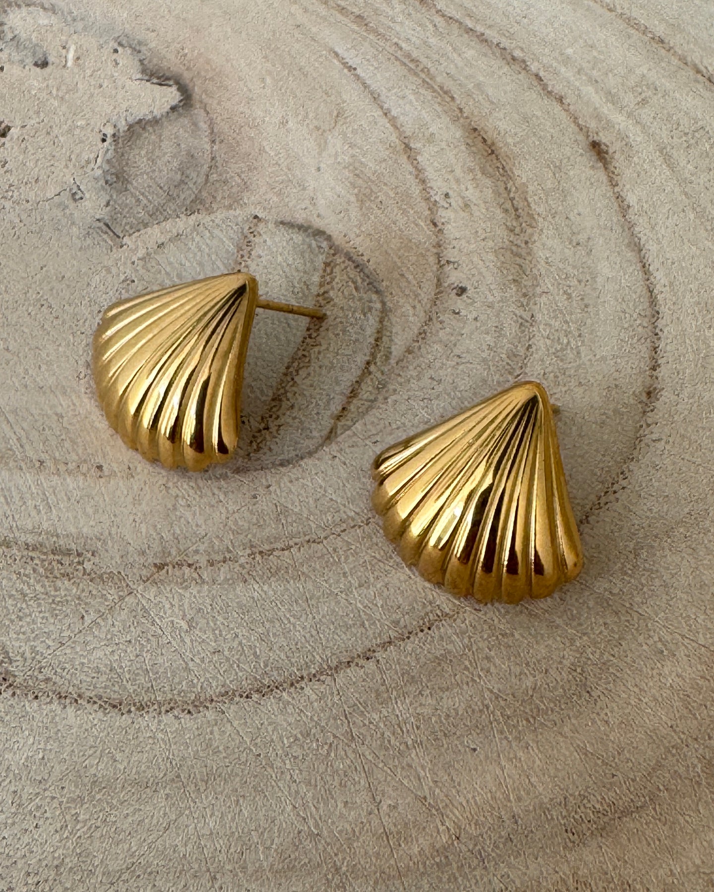 Understated yet elegant, the Golden Shore Earrings feature delicate gold-plated scallop shell charms that capture effortless coastal style.
